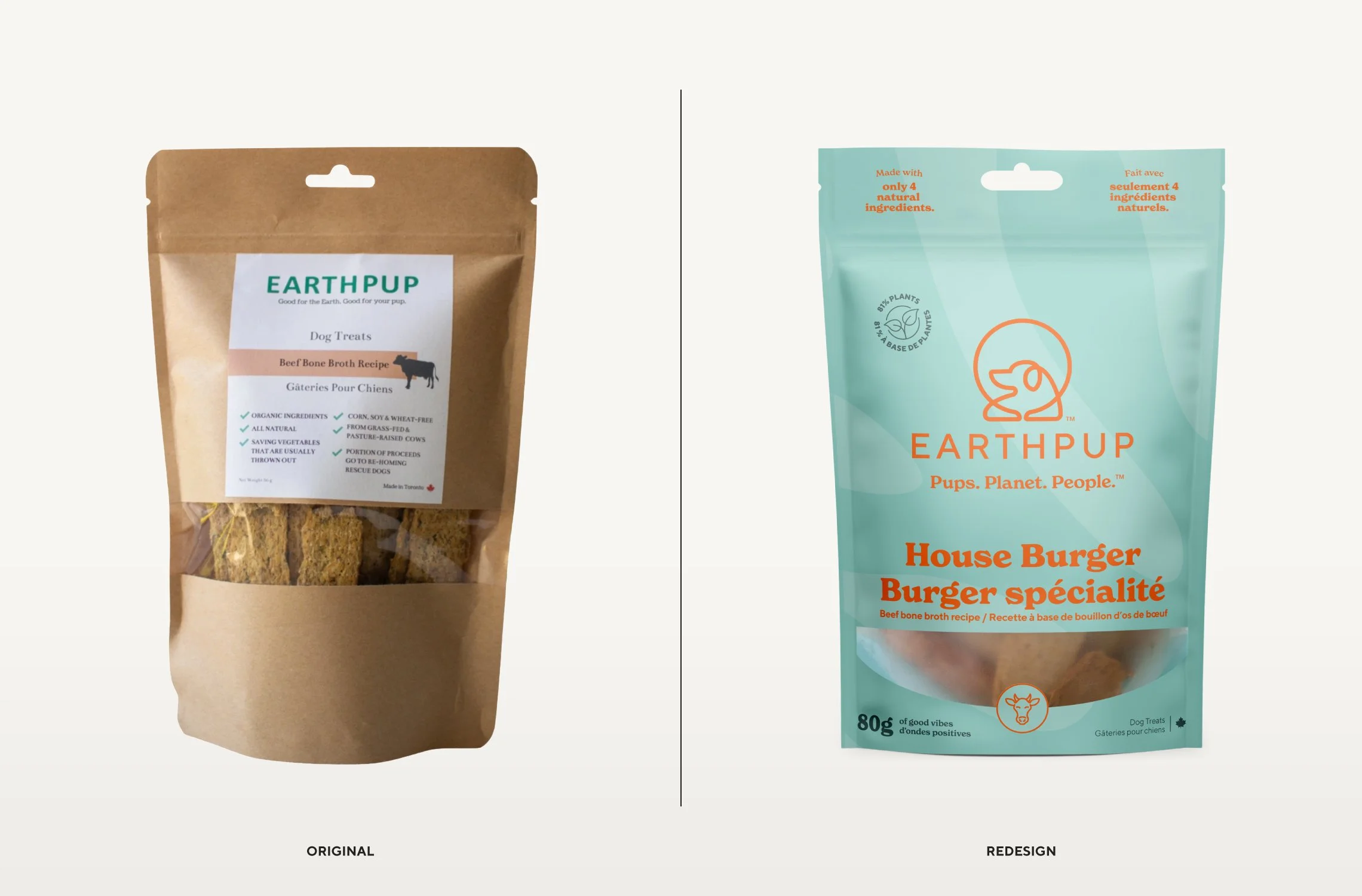 EarthPup was already selling their eco-conscious dog treats in several retail locations and online, but needed to take their entry-level packaging to the next level to scale their business. The founder Lucy is an award-winning environmentalist and sustainability expert, and her partner Adam is an acclaimed Toronto chef. It was clear they had the expertise to make this work!